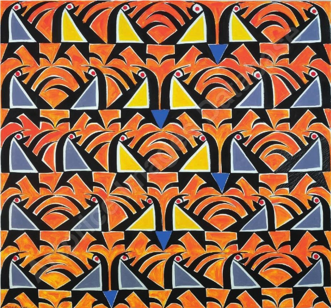Hussein Madi’s art is brimming with life—whether abstract patterns or portraits, his paintings and prints deliver bold, gestural strokes and a bright colour palette that make his works dance. Madi’s geometric shapes—often stylistically compared to Picasso and his Cubist movement or Matisse and his cut-outs—also lend his works to the medium of sculpture, bringing his subjects even closer to life (such as Untitled, 2000). The Lebanese artist prefers to capture living forms—from birds mid-flight (Birds, 2011) and rearing bulls and horses to the human figure in all manner of domestic environments (Untitled, 2012) and rural scenes (Abstract Flora, 2001). Even his most abstracted works seem to represent animals in their basic forms (such as Untitled, 2005). His tapering, fluid black lines also seem to reference the Arabic script and his use of symmetry, pattern and harmonic balance in composition reflect the principles of Islamic art and architecture. The artist was inspired by his profound belief in “God’s universal order, in which everything is different and yet composed of the same cosmic elements.”