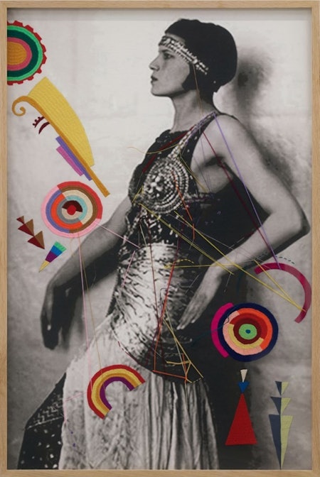 Digital print dyed onto cotton fabric, hand embroidered using silk, cotton and needles