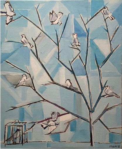 Jamil Molaeb: Arbre aux oisseaux [Bird Tree)] (undated) A haunting visual metaphor of constraint and liberation.
